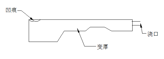 壁厚的部位出現(xiàn)縮孔或光澤,是因?yàn)楸砻鎸記]有形成堅(jiān)固的固化層,當(dāng)中心部收縮時(shí)會(huì)將表面向內(nèi)拉成縮孔,甚至由內(nèi)向外擴(kuò)散的熱量會(huì)將表面層再度熔解而出現(xiàn)光澤。